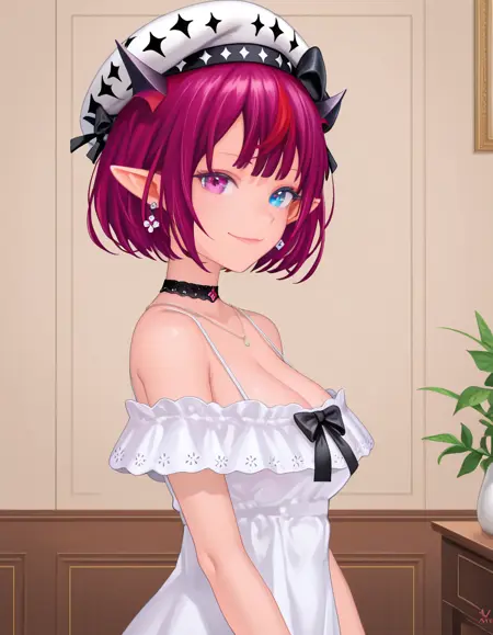 训练数据集由她重新出道(2.0模型)的截图和3D展示图组成。鉴于数据集的性质,在生成全身照时,你可能需要进行进一步的上采样。该LoRA在上半身肖像中效果最佳,尤其是在权重接近1时。偶尔会出现发色错误的情况,若发生此问题,请将其添加为负面提示。