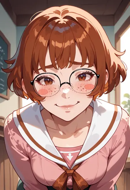 メインプロンプト:NSDorothyFE6、ほくろ、茶色の髪、短い髪、茶色の目