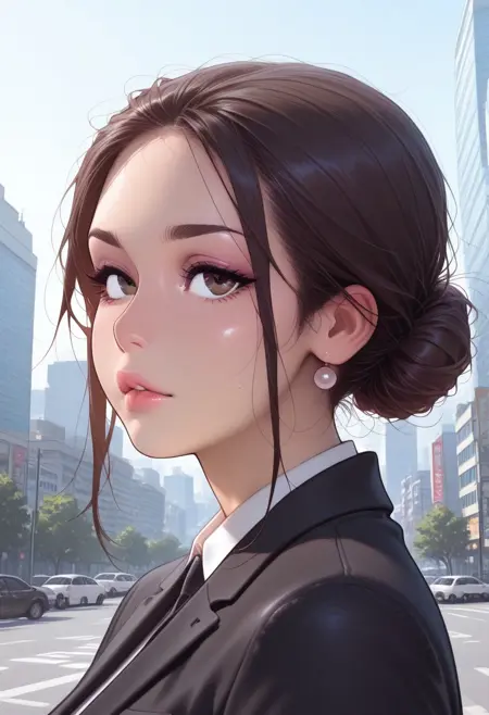 通常の髪の結い上げではなく、シニオンで画像を作成するため