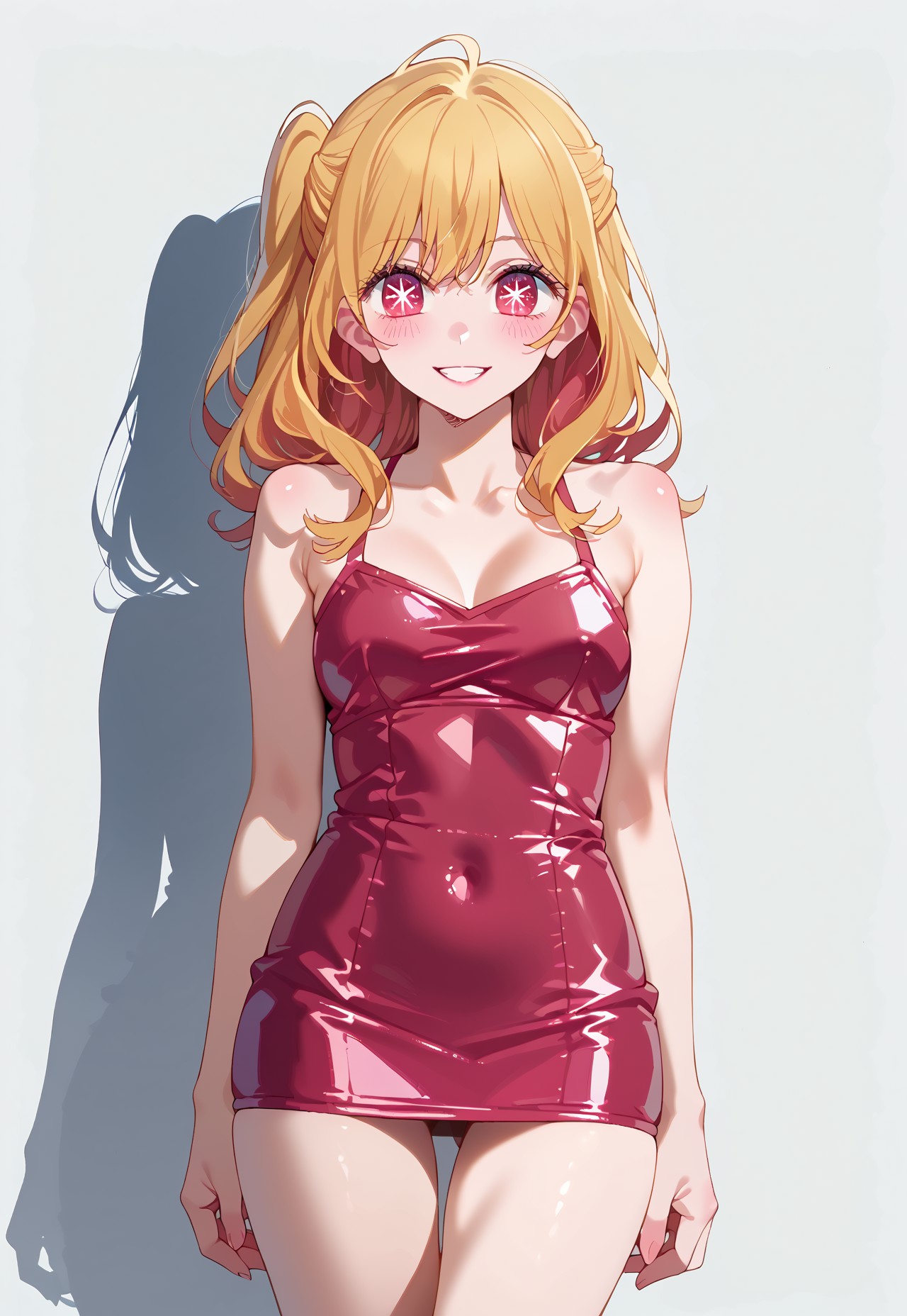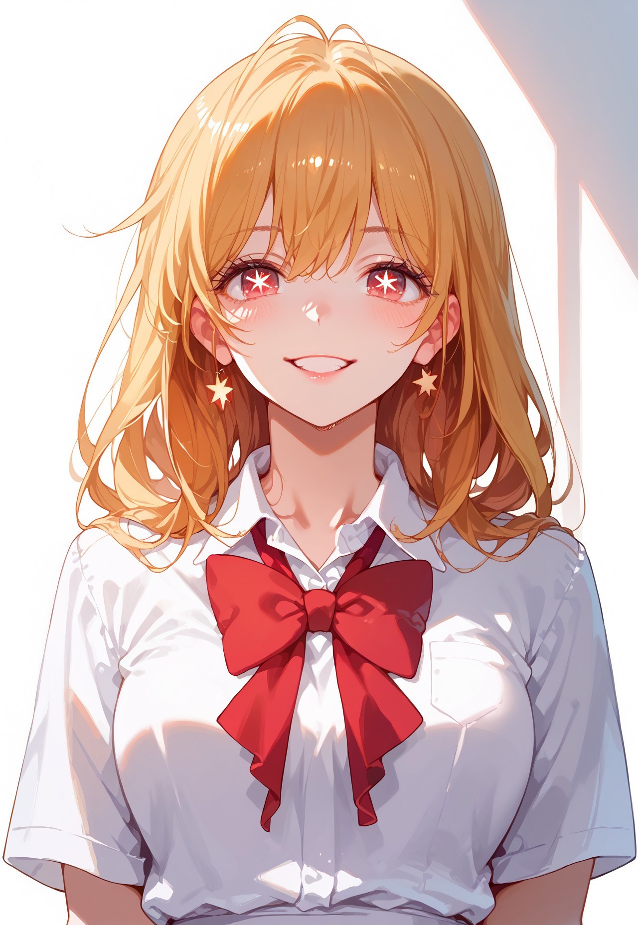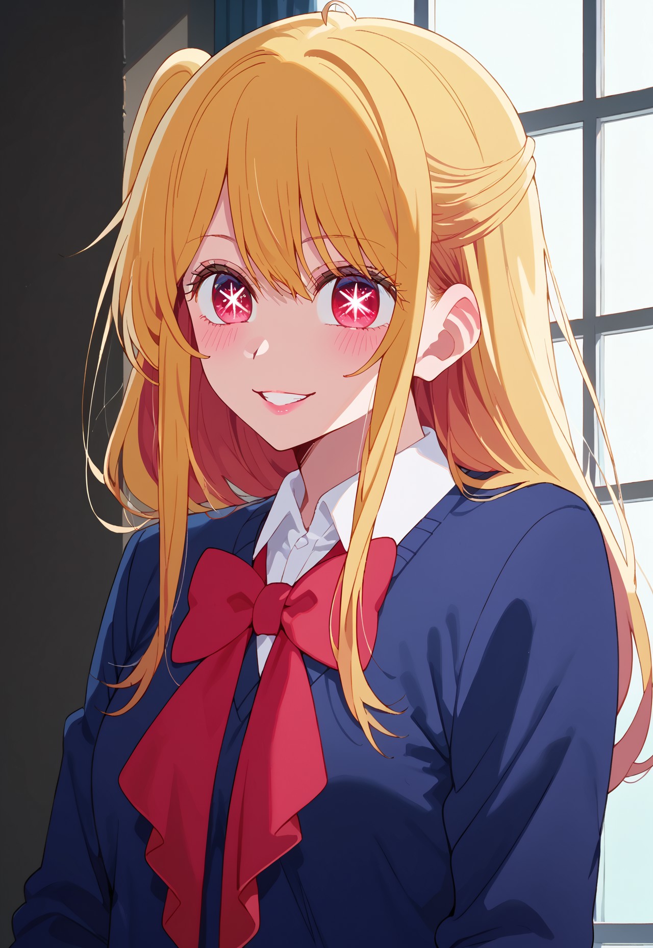 Trigger: anime, 1girl, Ruby, blonde hair, red eyes, star eyes,