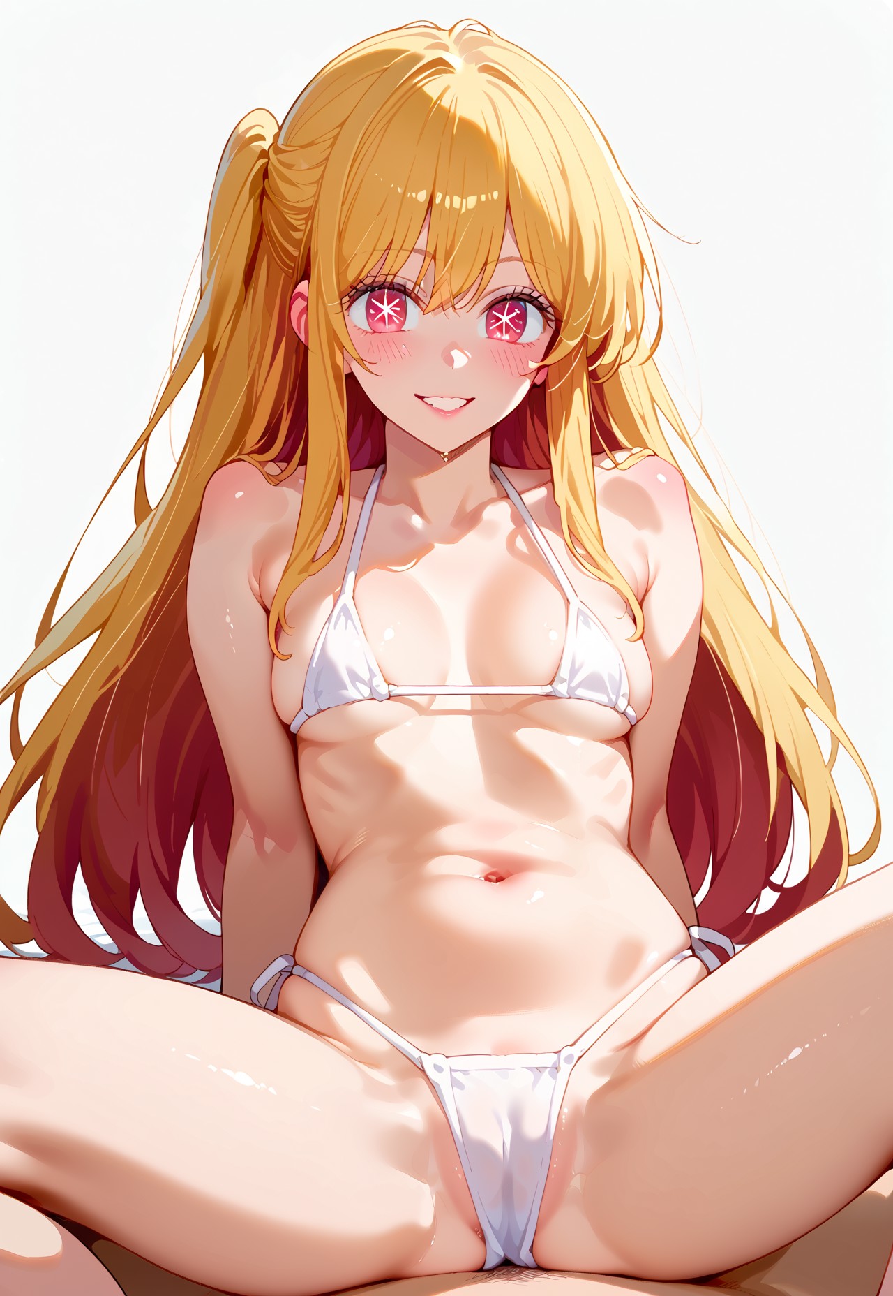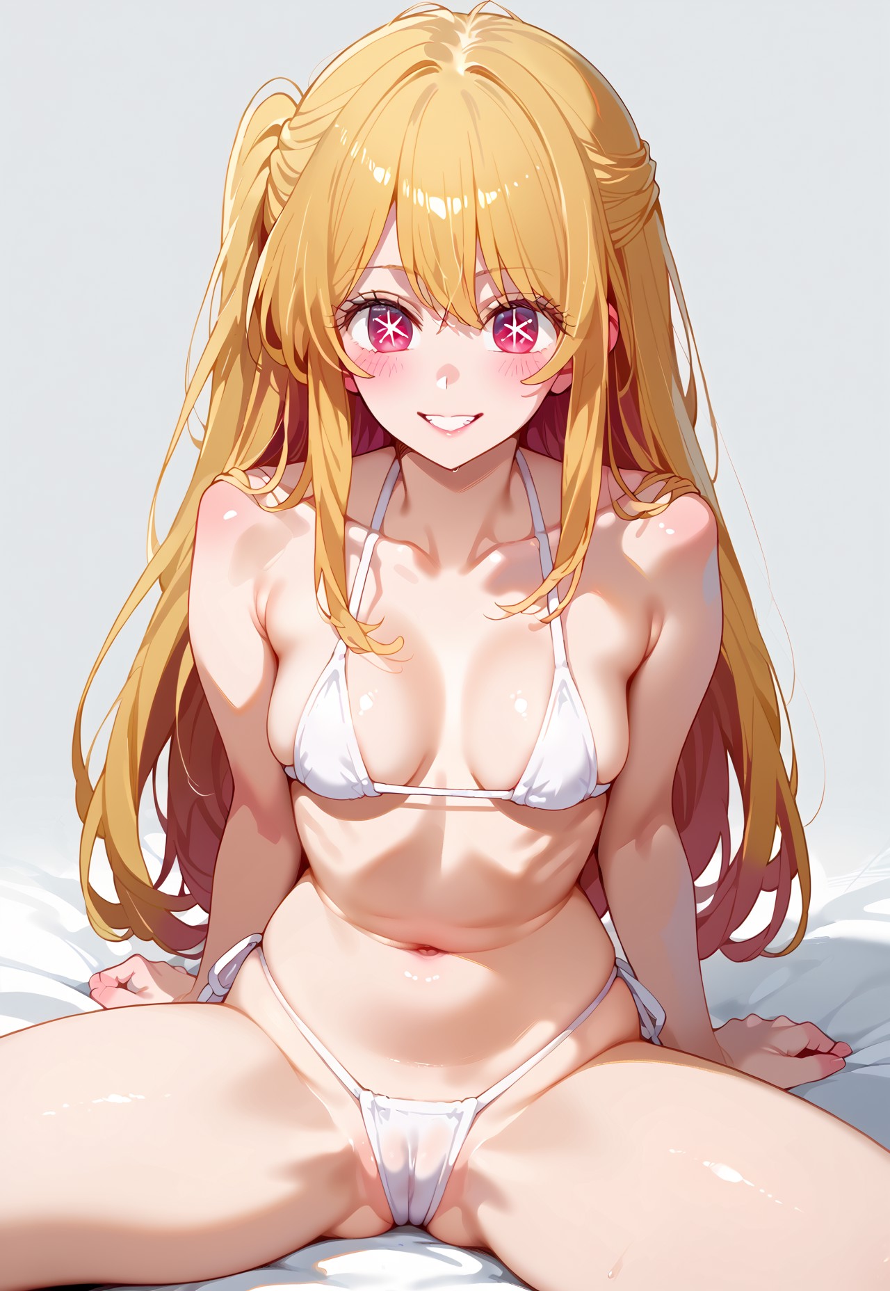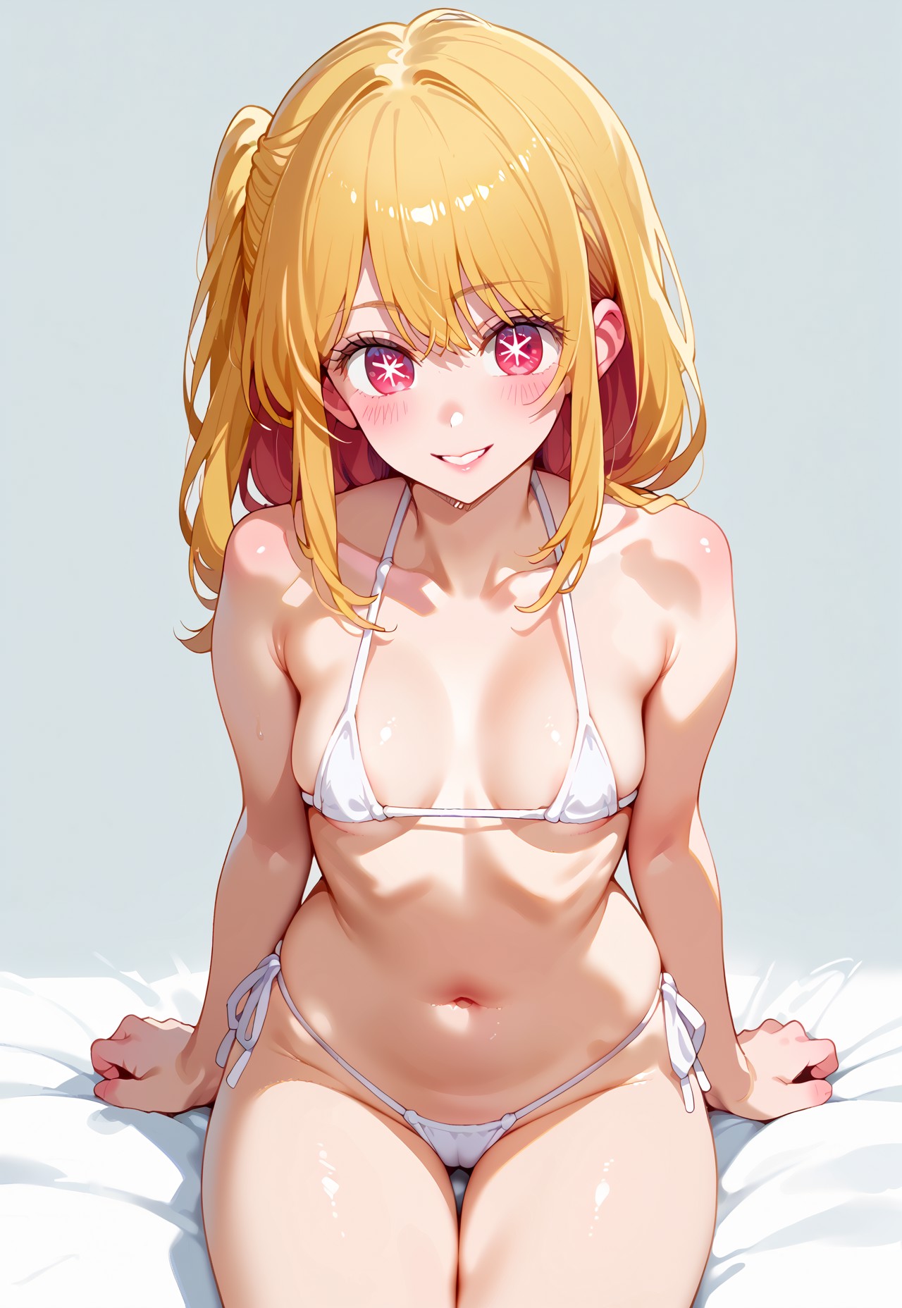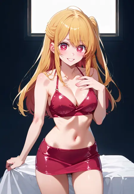 Trigger: anime, 1girl, Ruby, blonde hair, red eyes, star eyes,