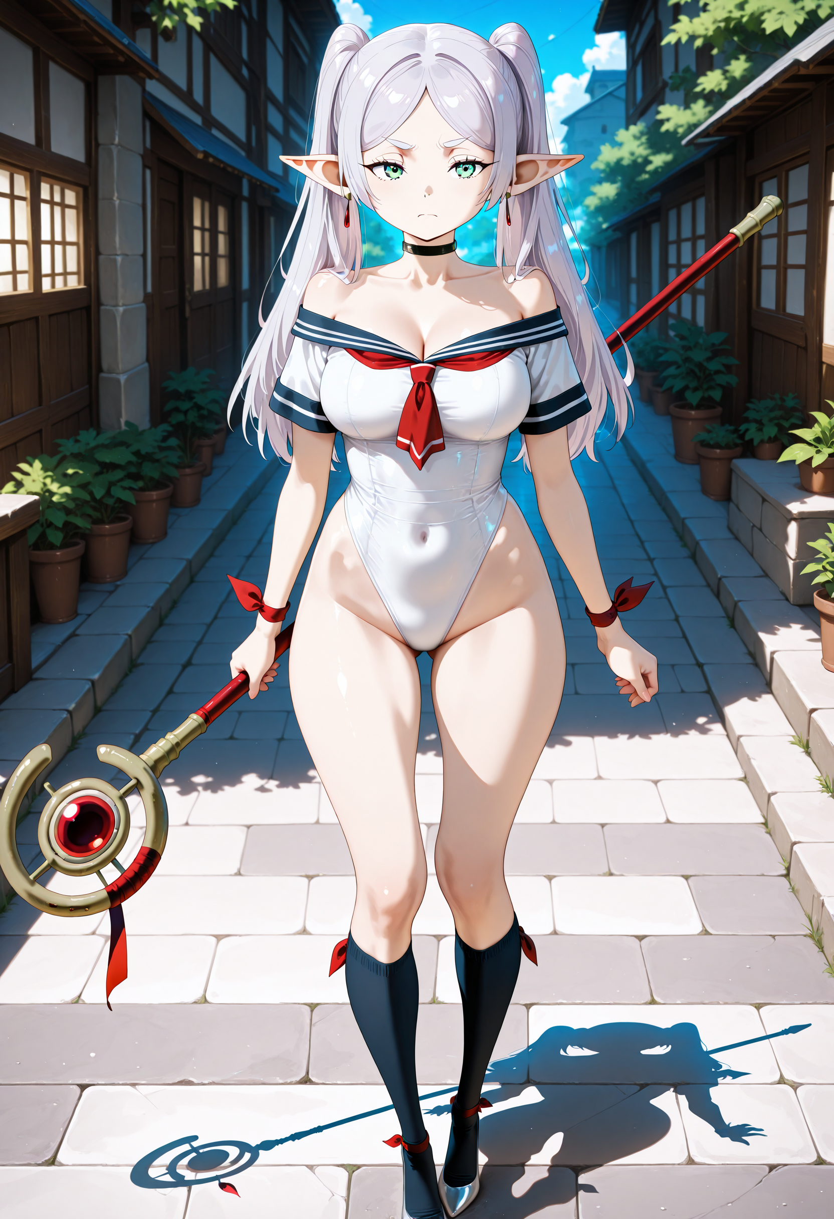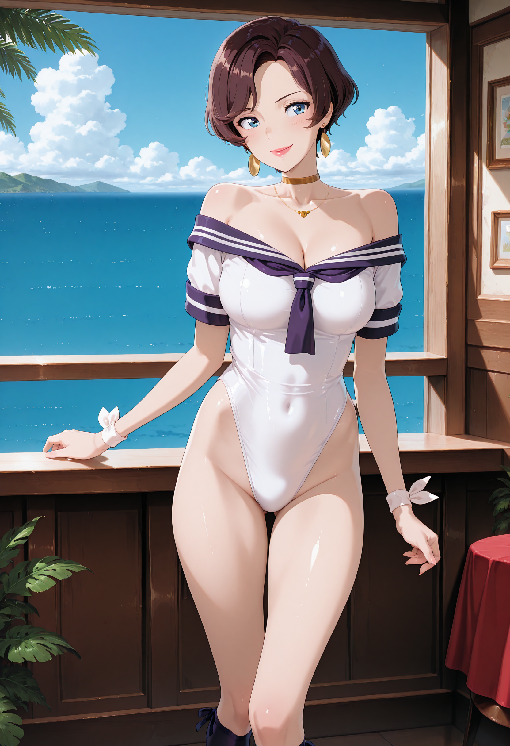 선원 칼라 레오타드, 무릎까지 오는 양말과 함께