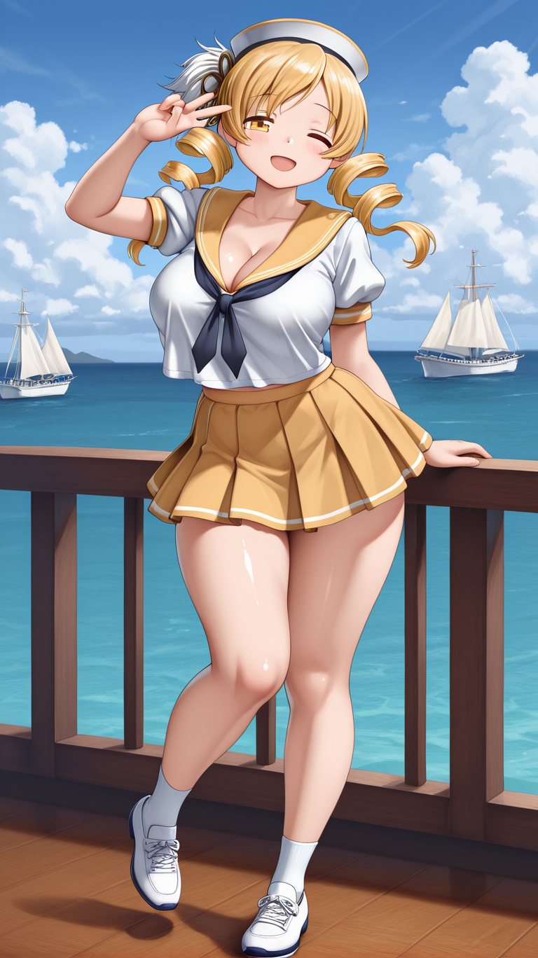 M4m1, blonde, blonde hair, tomoe mami, mami, tomoe, big breasts, cute, magical girl, maho shojo, yellow eyes, good quality, amazing quality, masterpiece