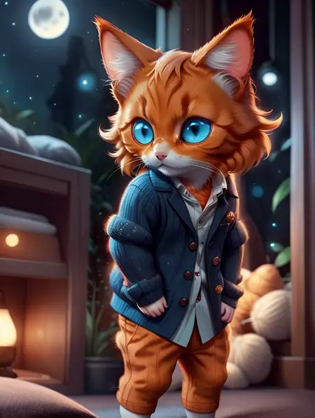 プロンプトから始めましょう:猫、人間化。強化にはWrmCtsflx(FLUX)を使用してください。