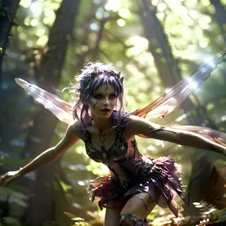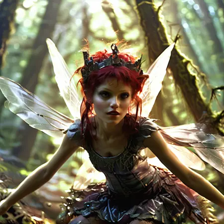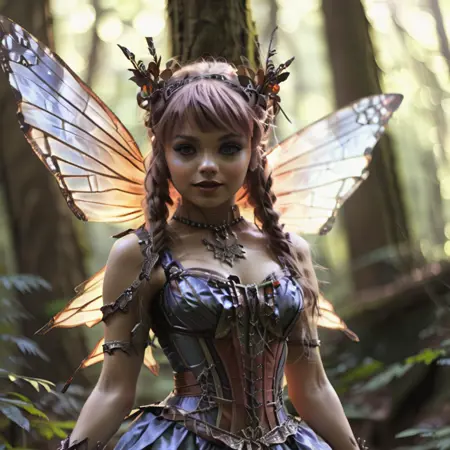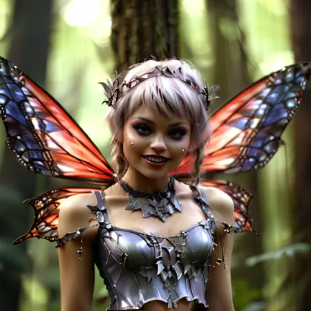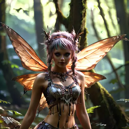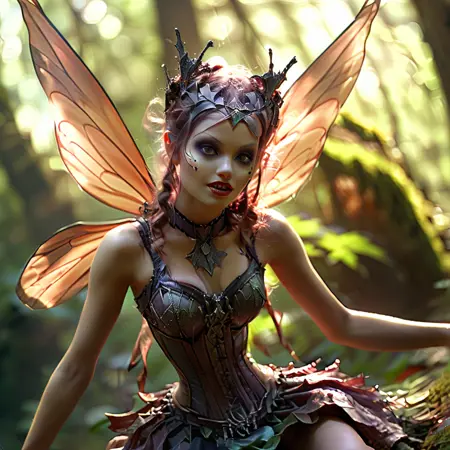 1girl, antennae, armlet, armor, bangs, bare shoulders, barefoot, belt, black hair, blonde hair, blue dress, blue eyes, blue hair, blunt bangs, blurry, blurry background, boots, bracelet, braid, breasts, brown eyes, brown hair, butterfly wings, choker, cleavage, corset, crown, curly hair, dark skin, dark-skinned female, depth of field, double bun, dress, earrings, facepaint, facial mark, fairy wings, flying, garter belt, gloves, green eyes, hair bun, hair ornament, hairband, head wreath, headband, insect wings, jewelry, lingerie, long hair, looking at viewer, looking to the side, makeup, medium breasts, midriff, multicolored hair, nail polish, navel, necklace, parted lips, pink hair, pointy ears, purple hair, realistic, red hair, ring, rpgpixie, short hair, sitting, skirt, sleeveless, small breasts, solo, tattoo, teeth, tiara, twin braids, upper body, wavy hair, white hair, wings, yellow eyes