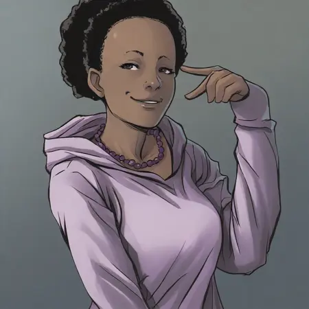 Prompt: Alice Obiefune, 深色皮肤, 黑发, 棕色眼睛, 发带