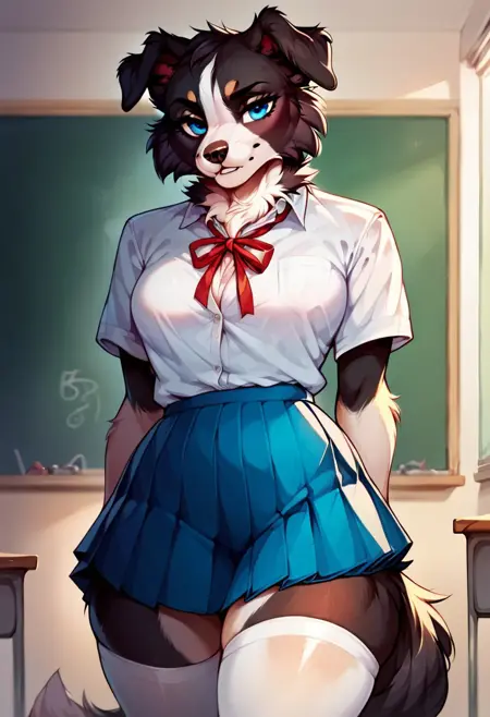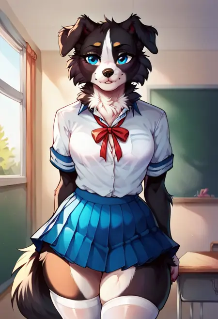 | トレーニングワード | Anthro, dog, border collie, Chloe the Dog, female, blue eyes, facial tuft, cheek tuft, neck fluff, floppy ears, wide hips,コピーしました! High-waisted nylon pants, ruffled sweater,コピーしました! white shirt, white thighhighs, pleated skirt, blue skirt, neck ribbon, red ribbon, ribbon, school uniform,コピーしました! blue one-piece swimsuit, casual one-piece swimsuit, highleg swimsuit,コピーしました! white lingeries, bow lingeries, blue bows, bow bra, bow panties, white stockings,コピーしました! |