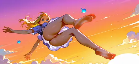 로라의 포즈는 소녀가 시청자를 뛰어넘는 장면입니다. 속옷을 입지 않았거나 속옷을 착용한 상태입니다. 현재까지의 첫 번째 테스트 버전이며, 기본 포즈는 Daz3d의 포즈에서 가져왔습니다.