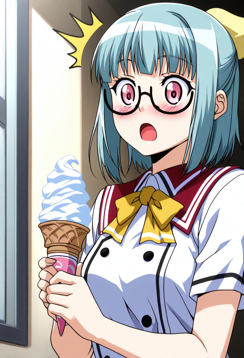 zzSuzu, pink eyes, aqua hair, short hair, half updo, semi-rimless eyewear,