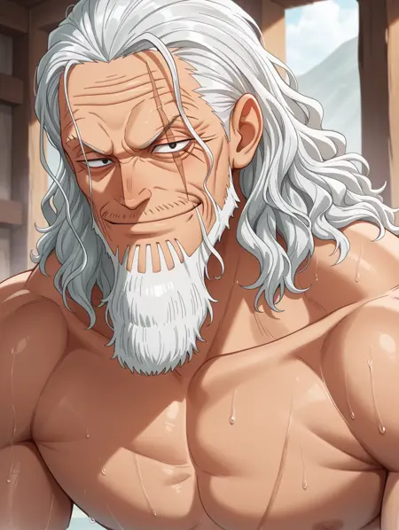 Silvers Rayleigh, old man, scar across eye, beard,black eyes,