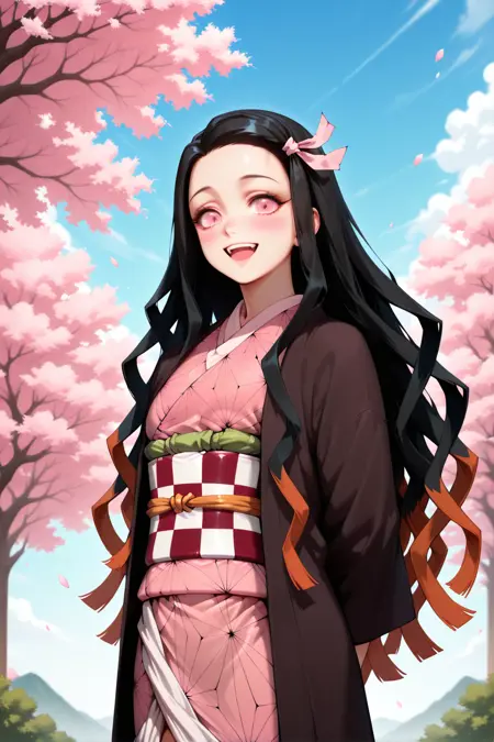 ilkamadonezuko, 1girl, breasts, 1boy, hetero, sex, japanese clothes, dark-skinned male, kimono, cum, black hair, kamado nezuko, dark skin, long hair, large breasts, ribbon, pink eyes, nipples, open mouth, pink kimono, hair ribbon, multicolored hair, tongue, tongue out, interracial, pink ribbon, arm grab, sash, obi, saliva, cum in pussy, blush, checkered sash, sweat<lora:illustrious Kamado Nezuko-1024x1600:1>