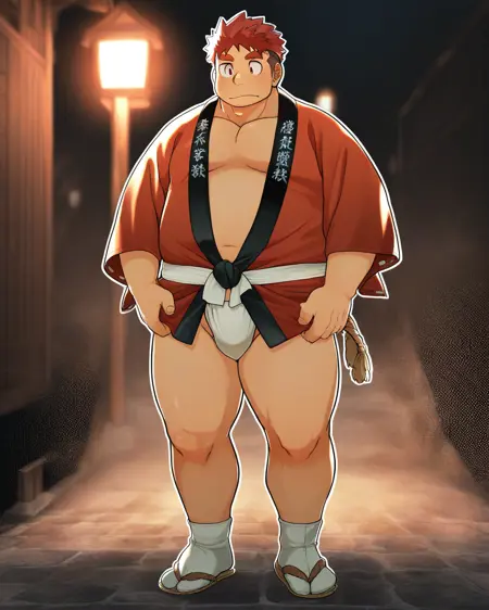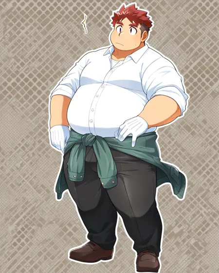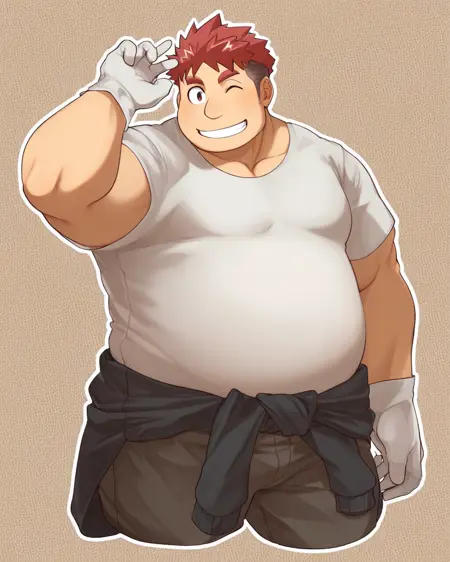 트리거 단어: ryota_housamo_ill, 빨간 머리, 양쪽 끝 부분이 점점 가벼워지는 헤어스타일, 점점 가벼워지는 이발, 곱슬거리는 머리, 뚱뚱함, 통통함, 동그란 얼굴, 바라, 남성적, 귀여운 남자