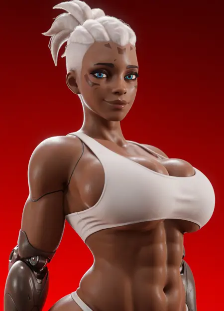 어두운 피부, 흰색 머리, 파란 눈, 로봇 관절, 사이보그, 사이버네틱, 매우 어두운 피부,