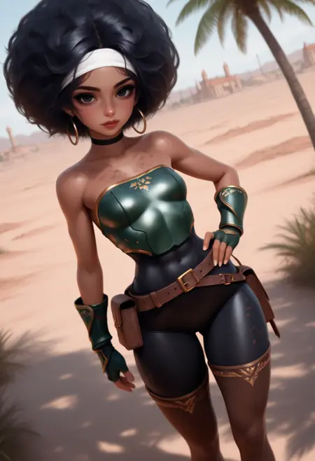 카이아 – 붉은 갈색 피부, 매운 검은 눈, 진한 갈색 입술, 점, 거대한 아프로, 근육질의 몸매, 작은 가슴, 자연스러운 손톱