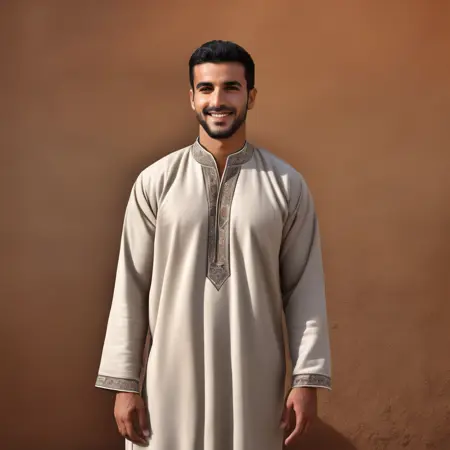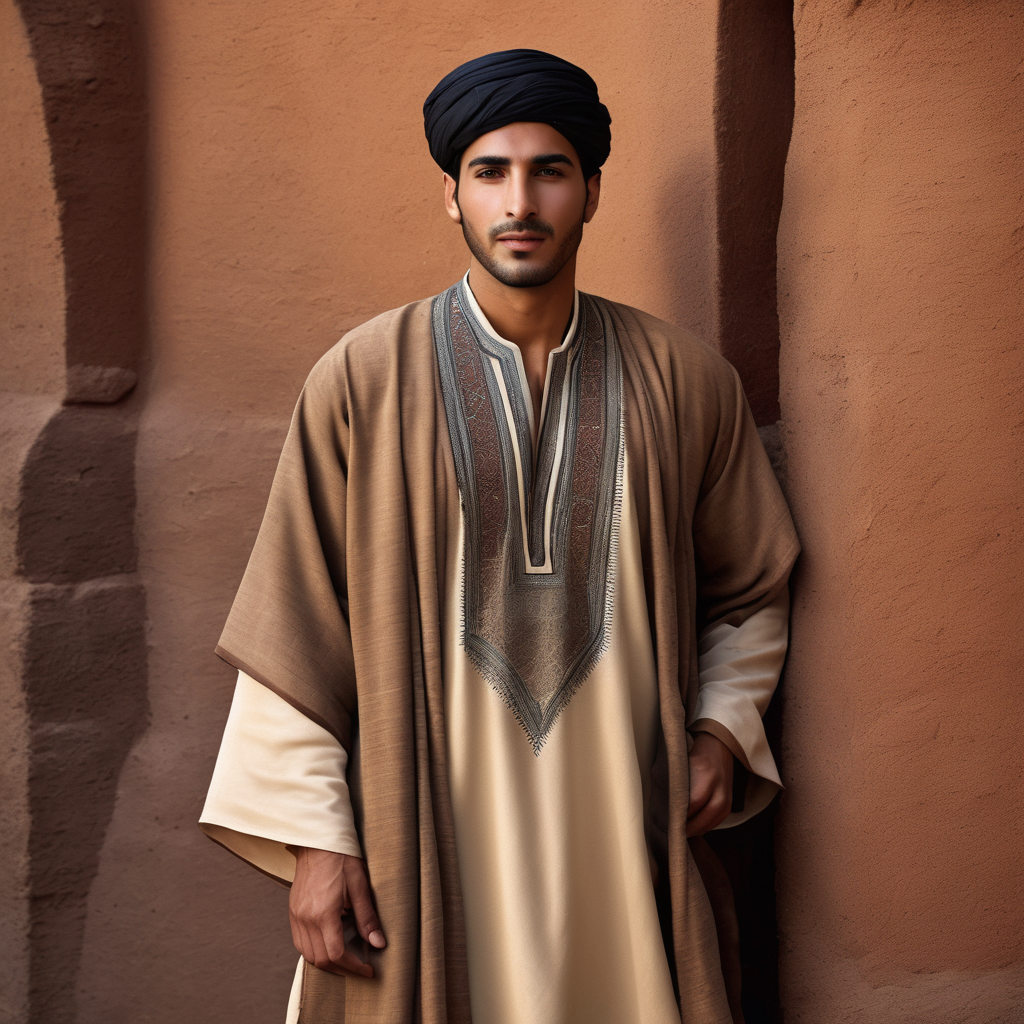 더 구체적으로, 젤라바의 색상, 패턴, 실루엣 및 착용 스타일과 같은 특성에서 영향을 받았습니다. 저는 다양한 문화적 맥락에서 젤라바를 묘사한 역사적 자료와 현대 사진을 포함한 광범위한 데이터베이스를 바탕으로 모델을 학습시켰습니다.
