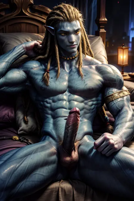 Jake decided to abandon his crippled human form to join a better existence among the brave Na'vi on Pandora. He had to learn from scratch everything again and took him time to get used to his new body. After all, those avatar hybrid have some differences from normal Na'vi, and Jake discovered - to his initial dismay- that soon the voice of a "very well gifted" Na'vi spread in the village. Can you blame him if all the chicks want to try the meaty rod of 'Toruk Makto'?