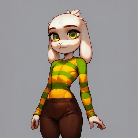 強化プロンプト:白い毛並み、大きな頭、緑の目、長い耳