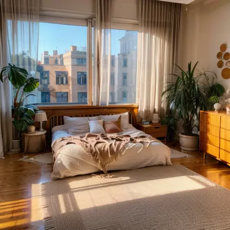 The Cozy_room LoRA is trained to generate aesthetic, photorealistic bedroom interiors with a warm, lived-in feel. It excels at producing scenes filled with soft lighting, layered bedding, pillows, string lights, rugs, indoor plants, and minimal or boho-style decor.