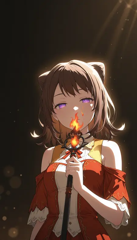 Tagsタグ: ksm,brown hair,cone hair bun,hair bun,medium hair(short hair),purple eyes,