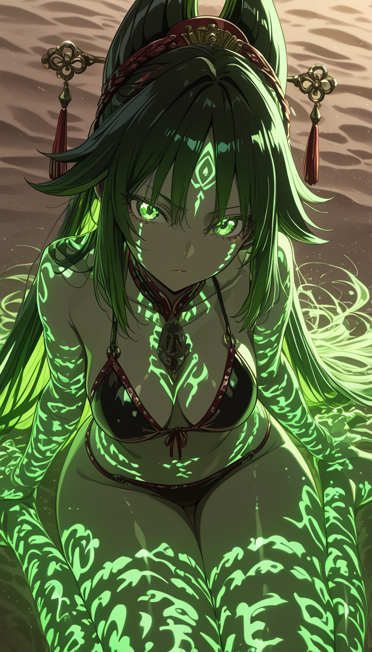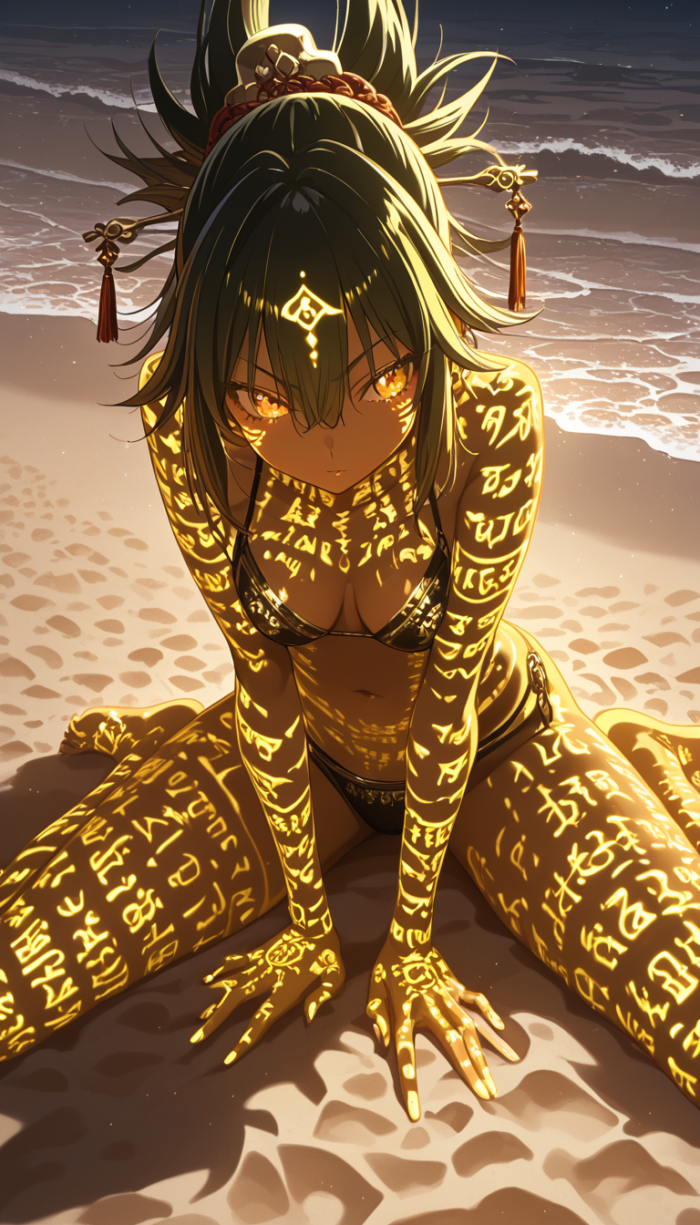 캐릭터의 피부에 룬/텍스트(대부분 한자와 히라가나)를 다양한 색상과 특정 신체 부위에 추가하여 무한한 가능성을 제공합니다.