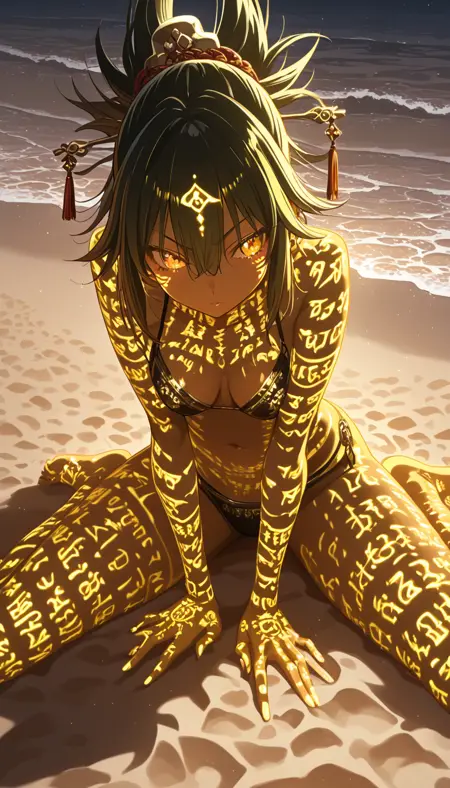Adds runes/text (mostly kanji and hiragana) on the character's skin, ranging in all colours and specific body parts, so the possibilities are endless.