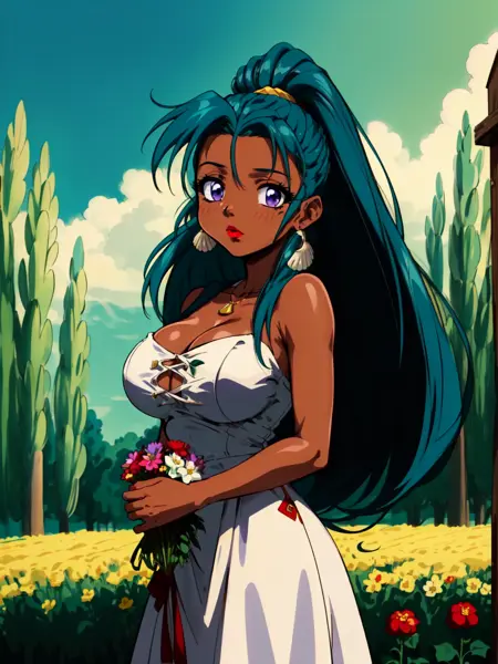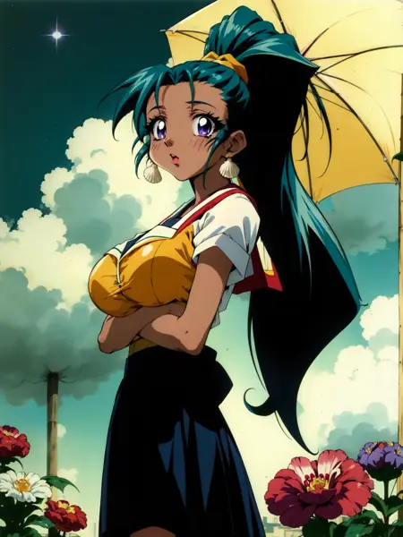 레트로 애니메이션 아트 스타일에 가까운 이미지를 생성하려면 다음은 투카사 코토부키의 텍스처 인버전이다: