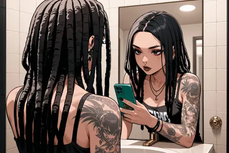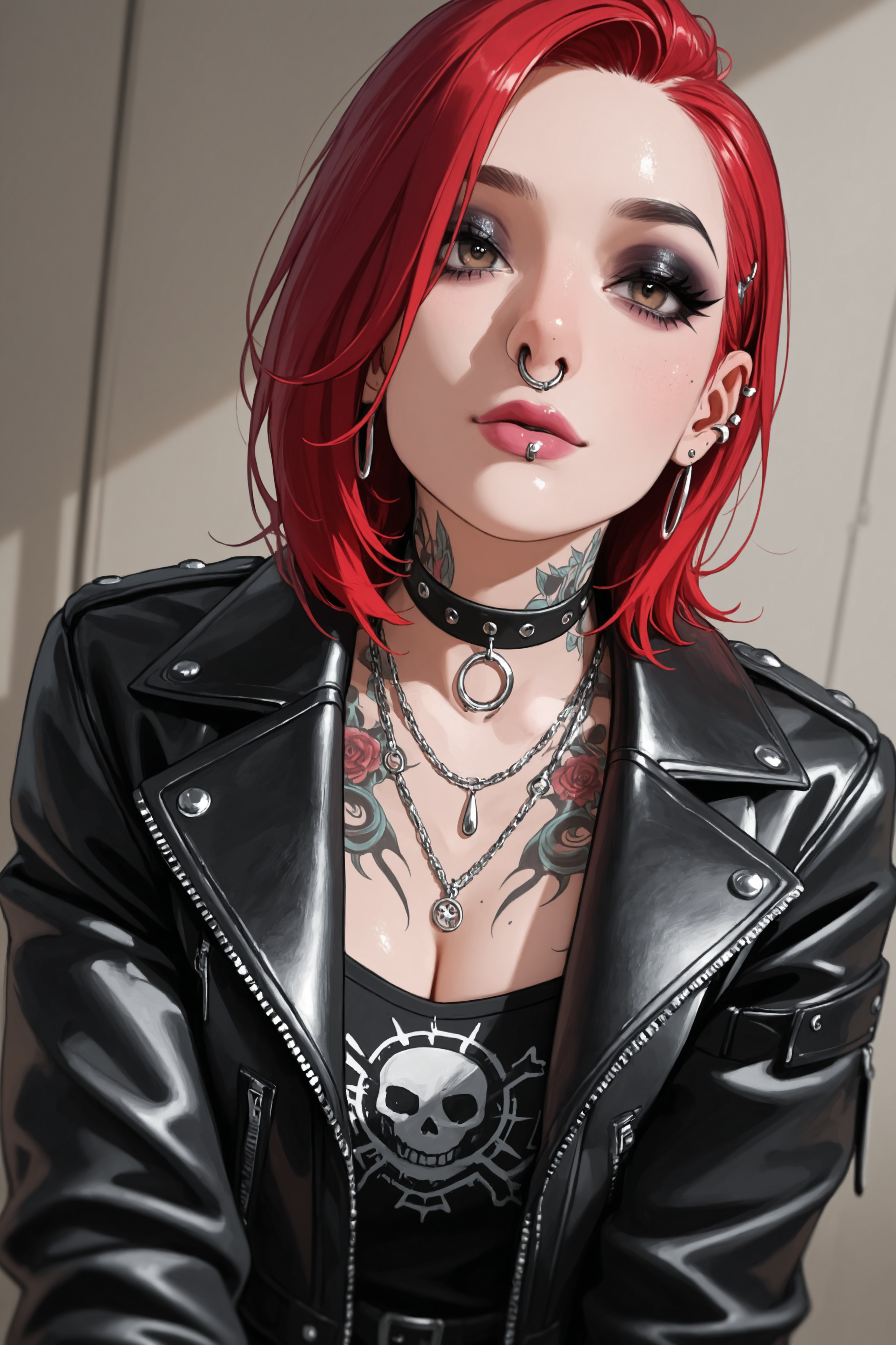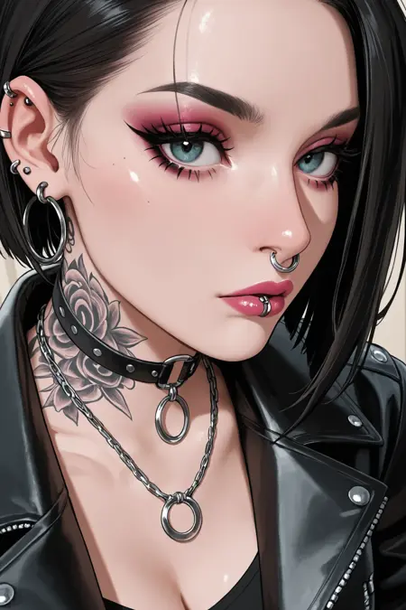 Pink Mayhem, updated LoRA for creating tattooed, pierced, punk, emo, goth, style women.