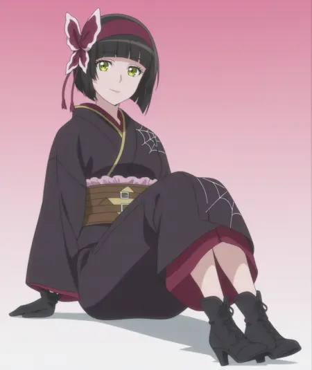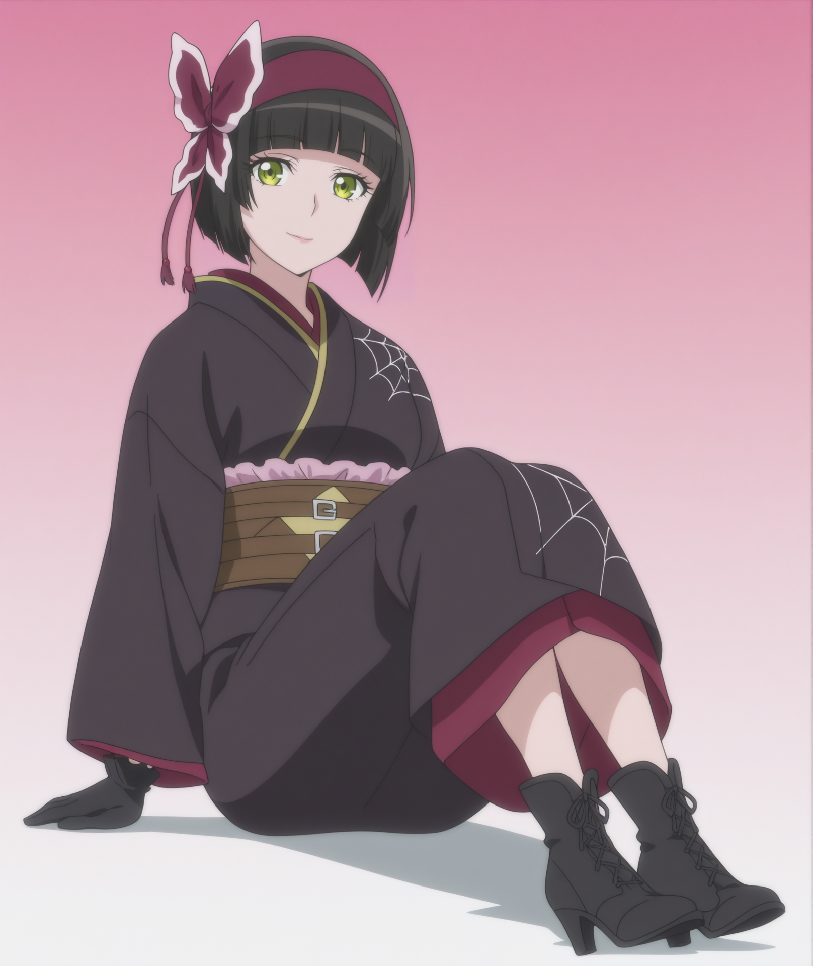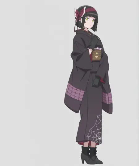 장갑, 검은 장갑, 일본 복장, 기모노, 띠, 오비, 검은 기모노, 거미줄 무늬,