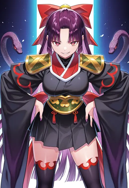 | 训练词汇 | shikoku 已复制! shikoku, long straight dark hair, straight bangs, middle part, sharp eyes, slit pupils, white pupils, black snakes at hair ends, medium breasts, wide hips, bow hair tie with ornament, sharp dark nails, manga, monochrome 已复制! shikoku, long straight purple hair, straight bangs, middle part, sharp red eyes, slit pupils, white pupils, purple snakes at hair ends, medium breasts, wide hips, red bow hair tie with gold ornament, sharp purple nails, manga, full colour 已复制! black kimono, shoulder guards with trim, oversized sleeves with pattern, ornate waistplate with trim and white ribbons, black short skirt, black thigh highs with trim 已复制! black kimono, gold and green shoulder guards, oversized sleeves with red pattern, gold and green ornamental waistplate with white ribbons, black short skirt, black thigh highs with red trim 已复制! |