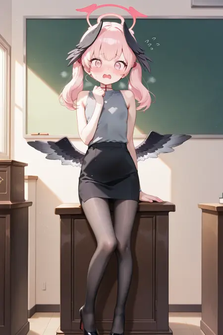 추가 의견: 이 LoRa를 완성하고 나서 약간의 후회가 들었습니다. 이 옷이 너무 평범해서, LoRa를 사용하지 않고 단순히 이 프롬프트만으로도 거의 비슷한 이미지를 얻을 수 있기 때문입니다—단지 상의 목 부분이 약간 다를 뿐입니다. 그리고 원본 소재에서 저를 끌었던 스타킹의 질감은 생성된 이미지에서 그렇게 두드러지지 않았습니다.
