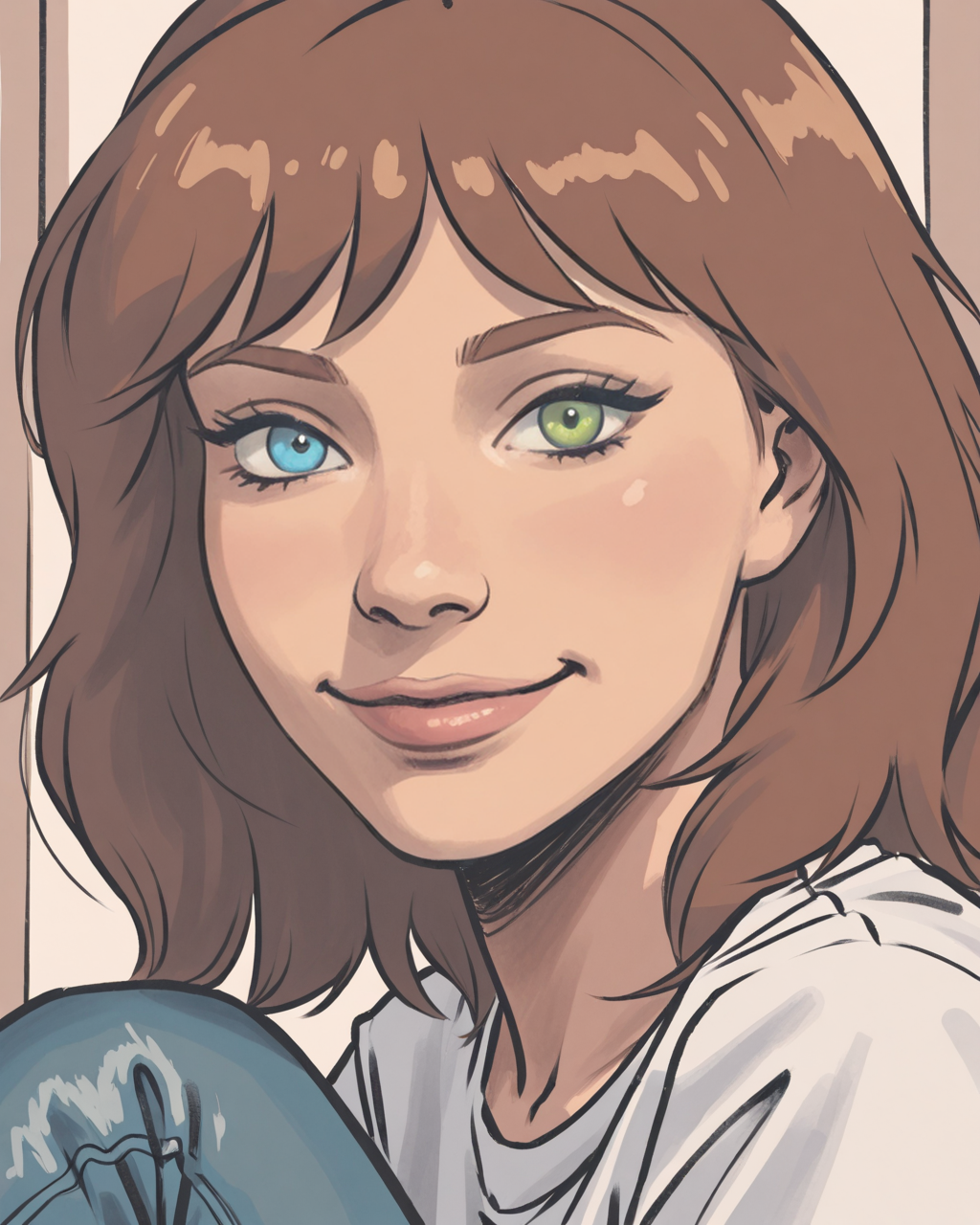 사미: sammi, 갈색 머리, 파란 눈, 녹색 눈, 이종색동안