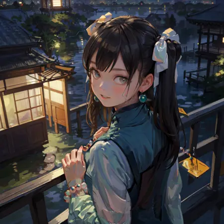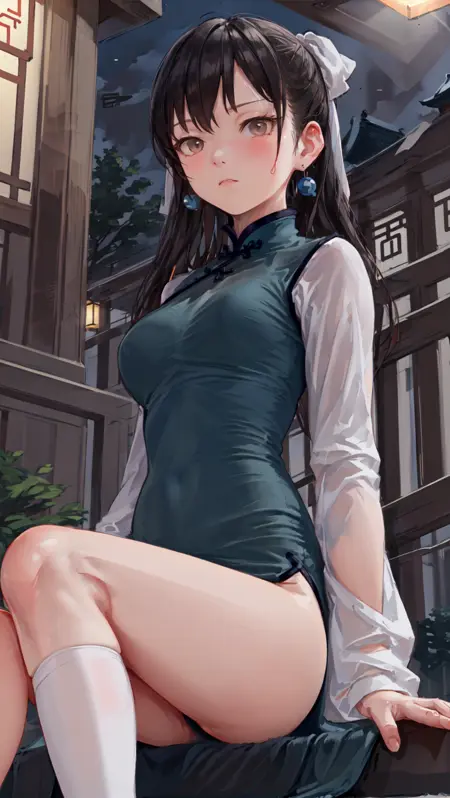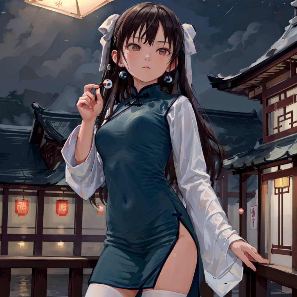 There are two sets of clothes in the 14 pictures. The white-sleeved china_dress and the wide robe. The china_dress runs more consistently, and the effect of the robe may be more random.