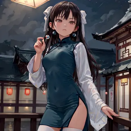 14张图中,共有两套服装:白袖旗袍和宽大道袍。旗袍表现较稳定,道袍的服饰效果则较随机。