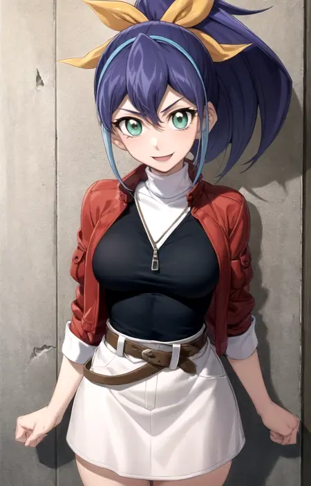 serena_lancer:用于获取她作为枪手的装扮。请与**jacket、black shirt、white neck、white skirt和brown belt一同使用。同时请将red skirt**放入负面提示中。