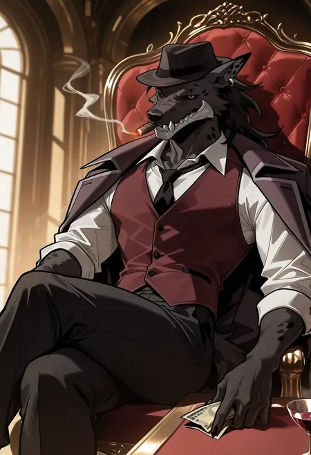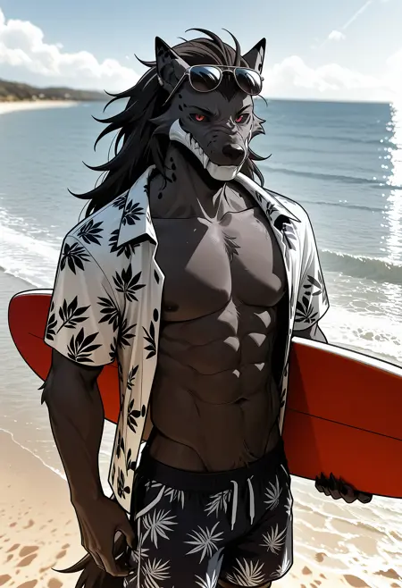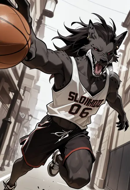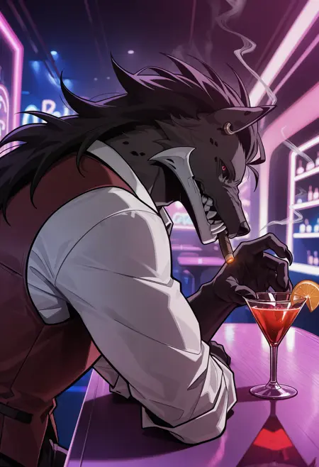 silocke, red eyes, black sclera, cybernetic jaw, snout