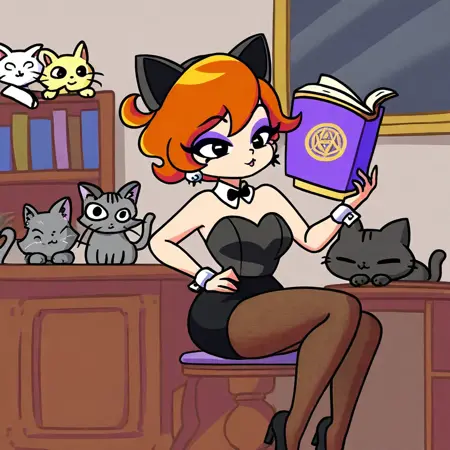 Nancy, 1girl, solo, short red hair, grey and black striped sweater, jeans, white sneakers
