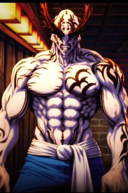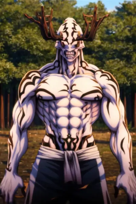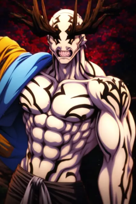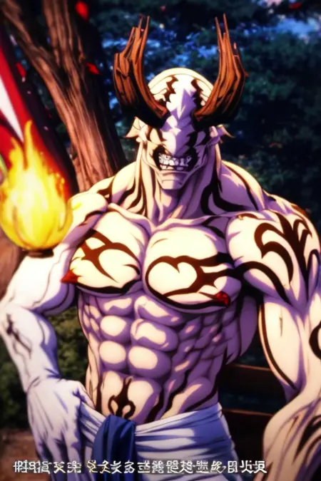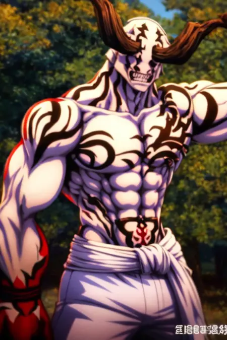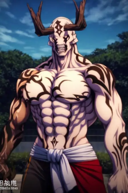 huayu,horns, teeth, pants, tattoo, muscular, abs, topless male,Liberate the left hand