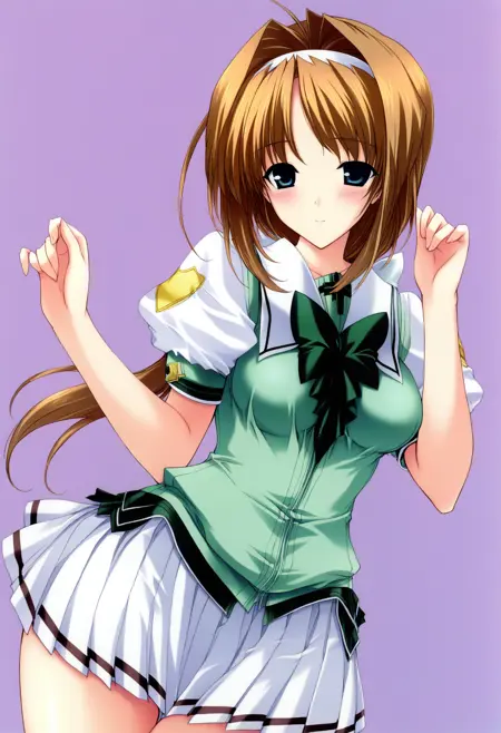 트리거 단어: c-haruka, 긴 머리, 갈색 머리, 파란 눈, 낮은 포니테일, 머리끈, 흰색 머리띠,