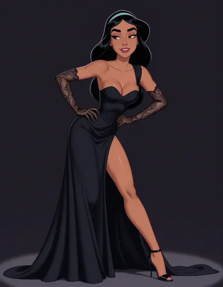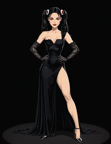 드레스: Lumina Brides. 원래 이름은 "One Shoulder Black Gothic Sexy Party Evening Dress with Lace Gloves"지만, 대신 이 이름을 사용했어야 했죠... 적어도 드레스는 훌륭합니다!