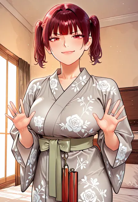 경은: gyong-eun, 아름다운 붉은 머리카락, 아름다운 긴 머리, 거대하고 곱슬거리는 가슴, 선명한 진홍색 눈,