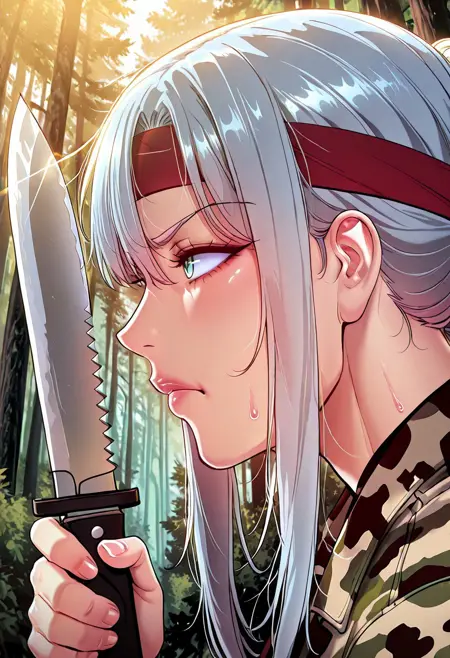 유미: yumi_sf, 아름다운 은색 머리카락, 한 줄의 머리 땋기, 어깨에 걸친 머리, 거대하고 곱슬거리는 가슴, 선명한 밝은 은색 눈, /낮게 묶인 머리,