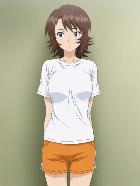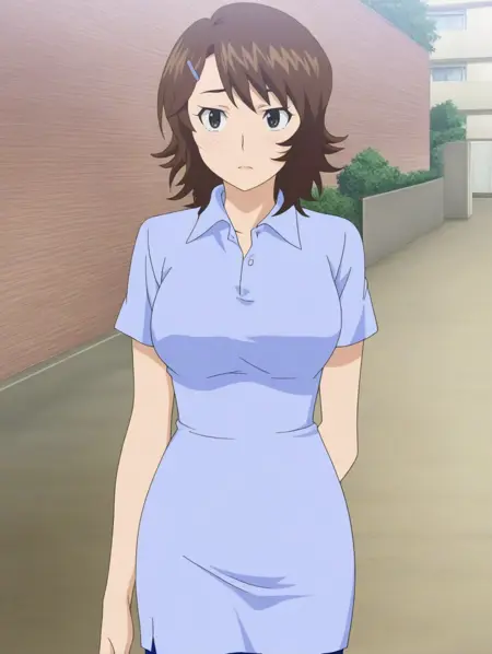 일반: 갈색 머리카락, 머리핀, 단발, 검은 눈,
