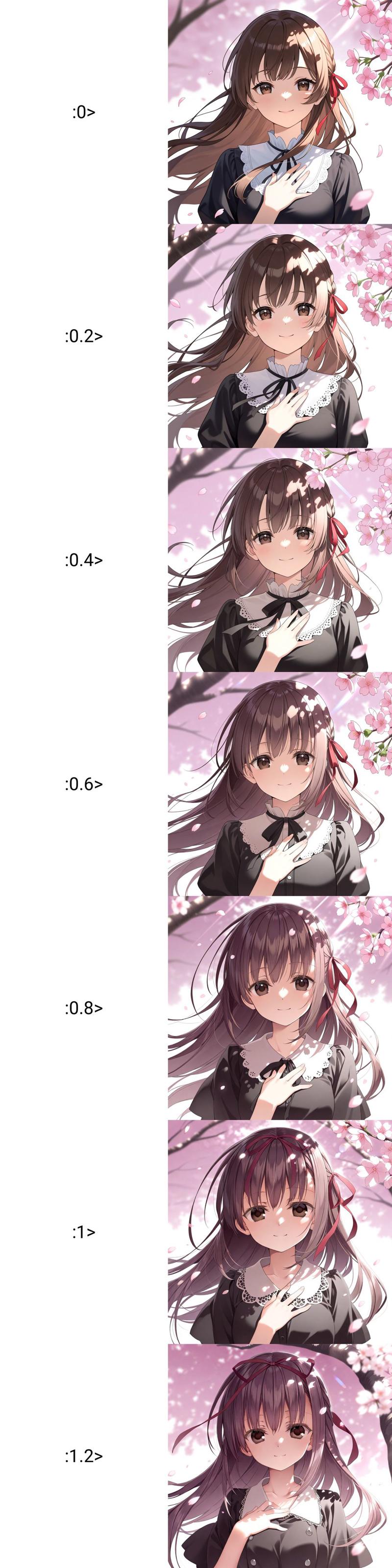 私のLoRAを使用する際は、どのような肯定的品質タグも使用しないでください。品質タグの本質は画風であり、これがなぜあなたの結果が私のと大きく異なるのか、特に「光辉」シリーズのベースモデルで顕著です!