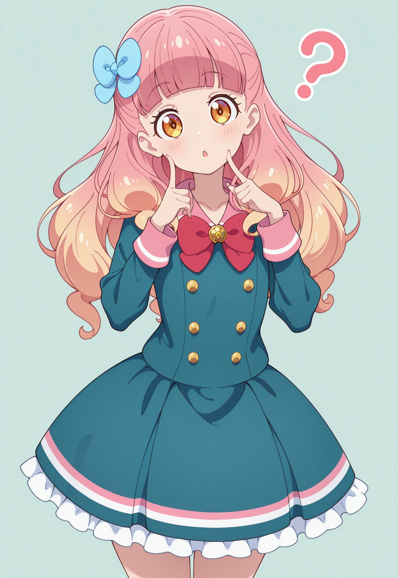 a1neschoolunif, aqua_school_uniform, red bowtie, frilly_skirt, aqua_skirt