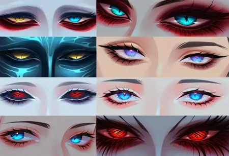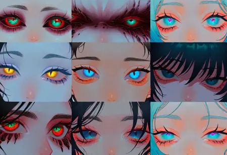 multiple people, multi-eye-focus, eye focus, multiple panels, square format, tall format