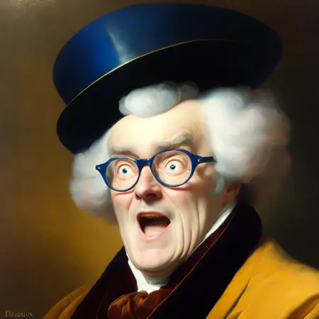 该LoRA模型基于约瑟夫·杜克洛克斯(Joseph Ducreux)约1790年的自画像(公共领域图像)进行训练。训练前,图像已进行裁剪、放大和去噪处理。