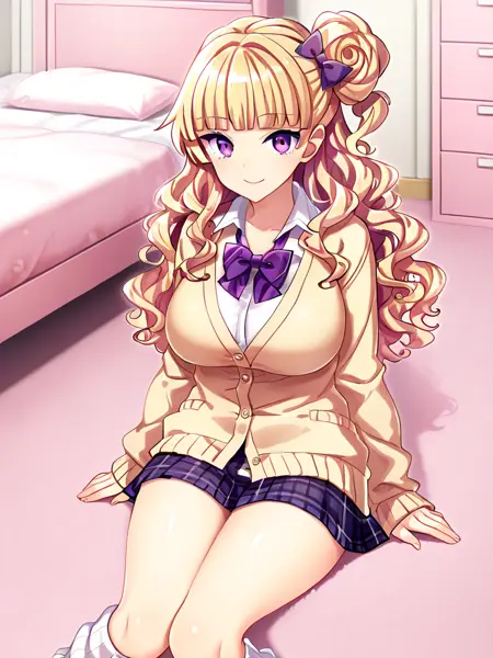 마유리 사유리, 분홍색 머리, 트윈테일, 점박이 리본, 중간 정도의 가슴,