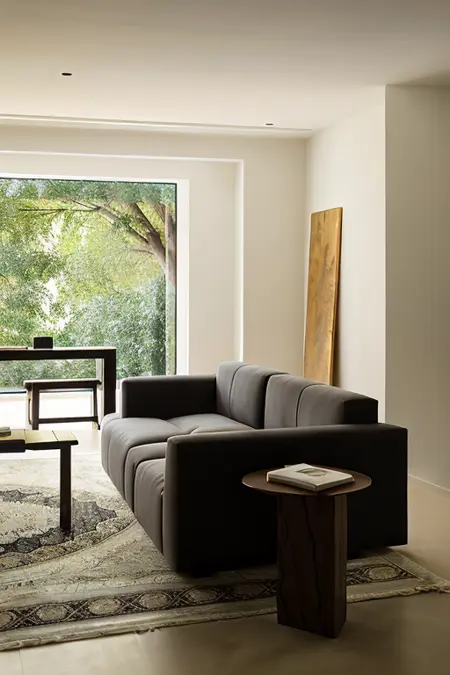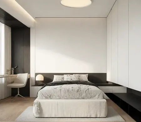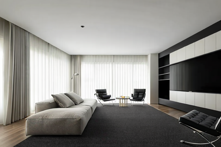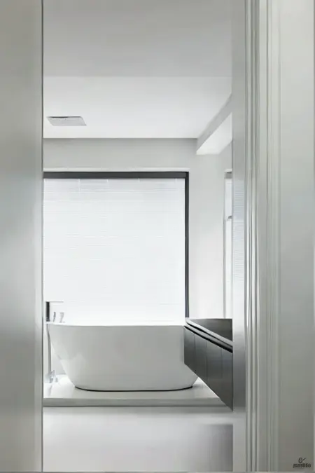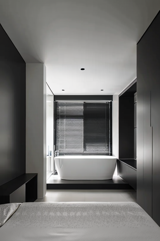 black and white minimalist, livingroom, chair, window, curtains, ceiling, The television background wall, television, cabinet, sofa, carpet, ceiling light, kitchen, cupboard, table, range hood, still life, floor tile, glass door, window blinds, fridge, curtains, bed, bedroom, chair, table, ceiling light, Bedhead background, bathroom, step, window blinds, bathtub, Washbasin, shower room, mirror, floor tile