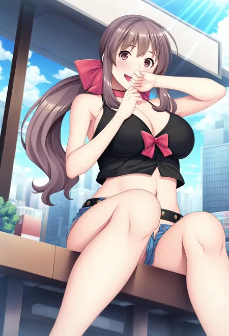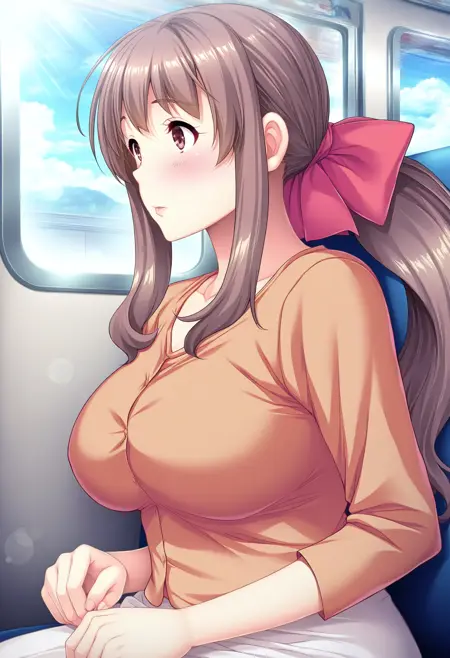 トリガーワード: c-kayo、ロングヘア、ブラウンヘア、ブラウンアイズ、ポニーテール、ヘアボウ