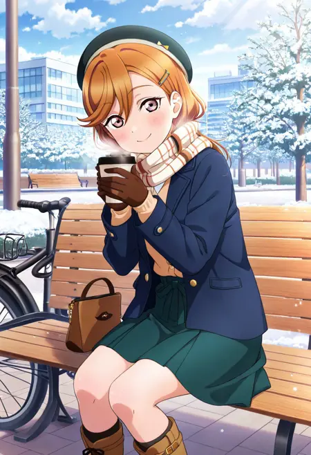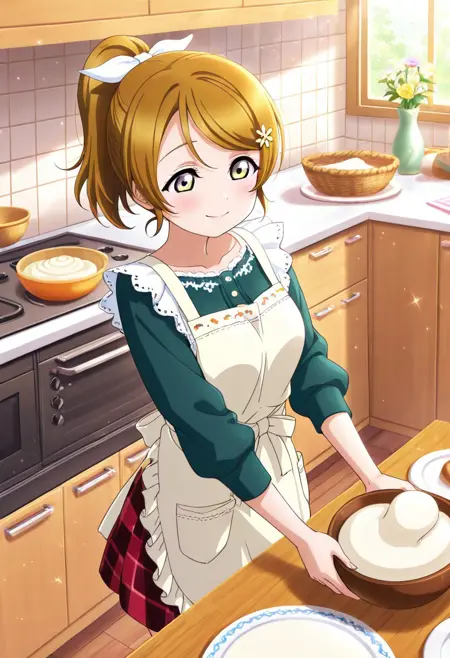 kousaka_honoka,, 青い目, 茶髪, 髪飾り, オレンジ色の髪, 片側アップ, 短い髪, 黄色いリボン,